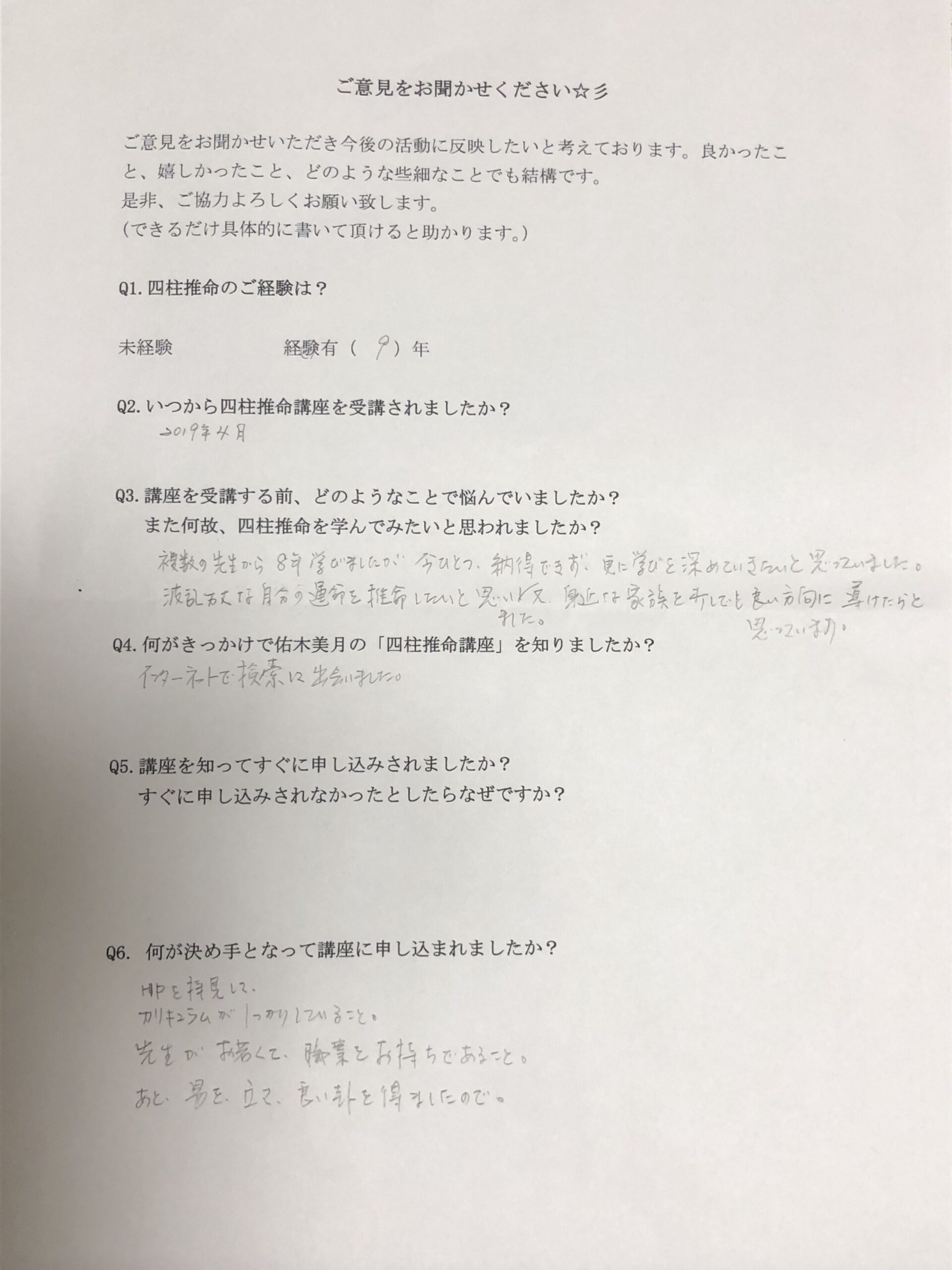 Q4.何がきっかけで佑木美月の「四柱推命講座」を知りましたか?